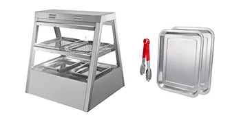 Sono inclusi 2 livelli di scaffale. Il vassoio superiore può essere estratto e estratto, offrendo una maggiore capacità di patty warmer.