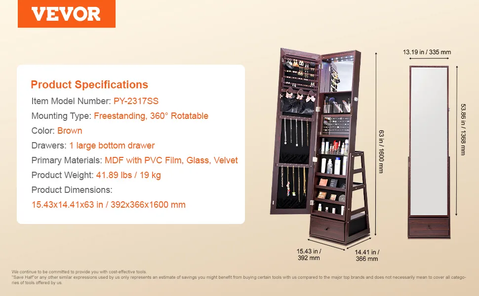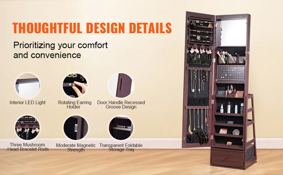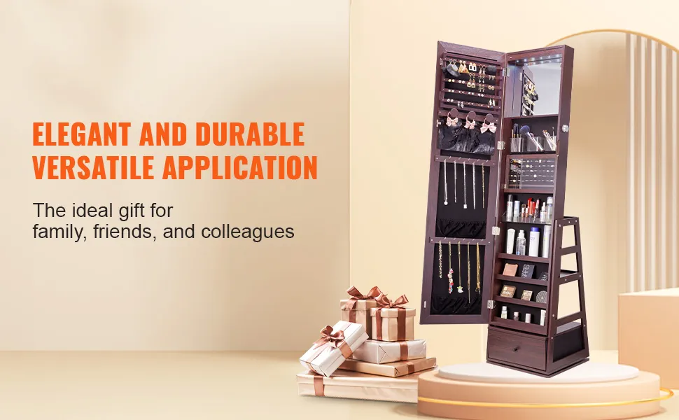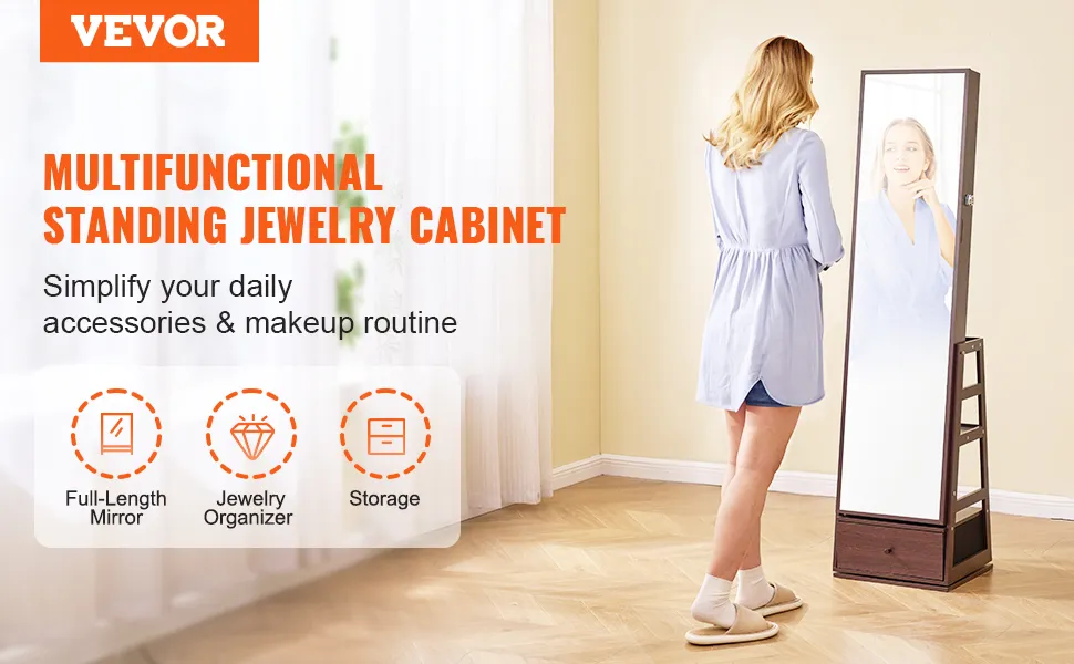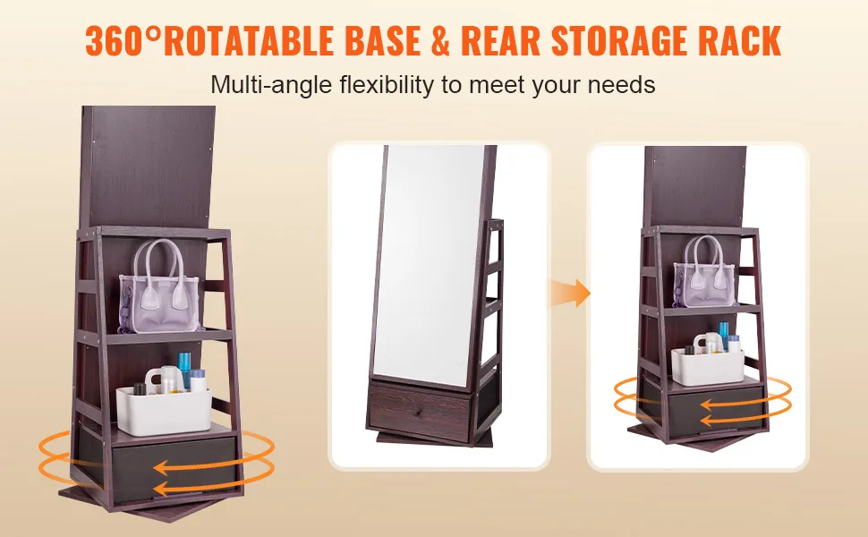Funzionalità flessibile: lo specchio girevole con contenitore VEVOR non è solo un organizer per gioielli, ma anche uno specchio a figura intera, che offre una visione completa del tuo outfit.