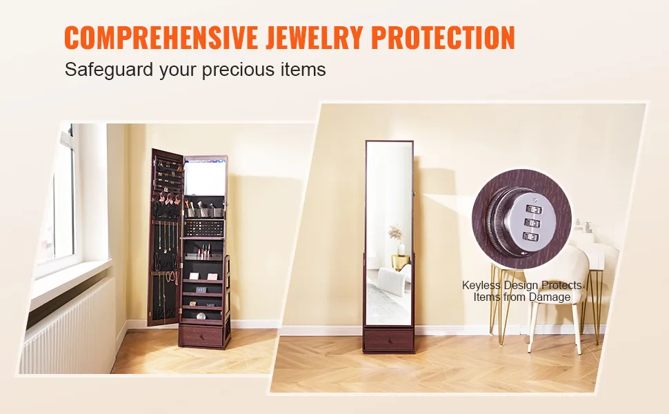 Protezione sicura: questo mobiletto portagioielli a specchio è dotato di un design con serratura con password senza chiave, eliminando il rischio di perdere le chiavi e proteggendo i tuoi oggetti di valore dai danni causati dai bambini.