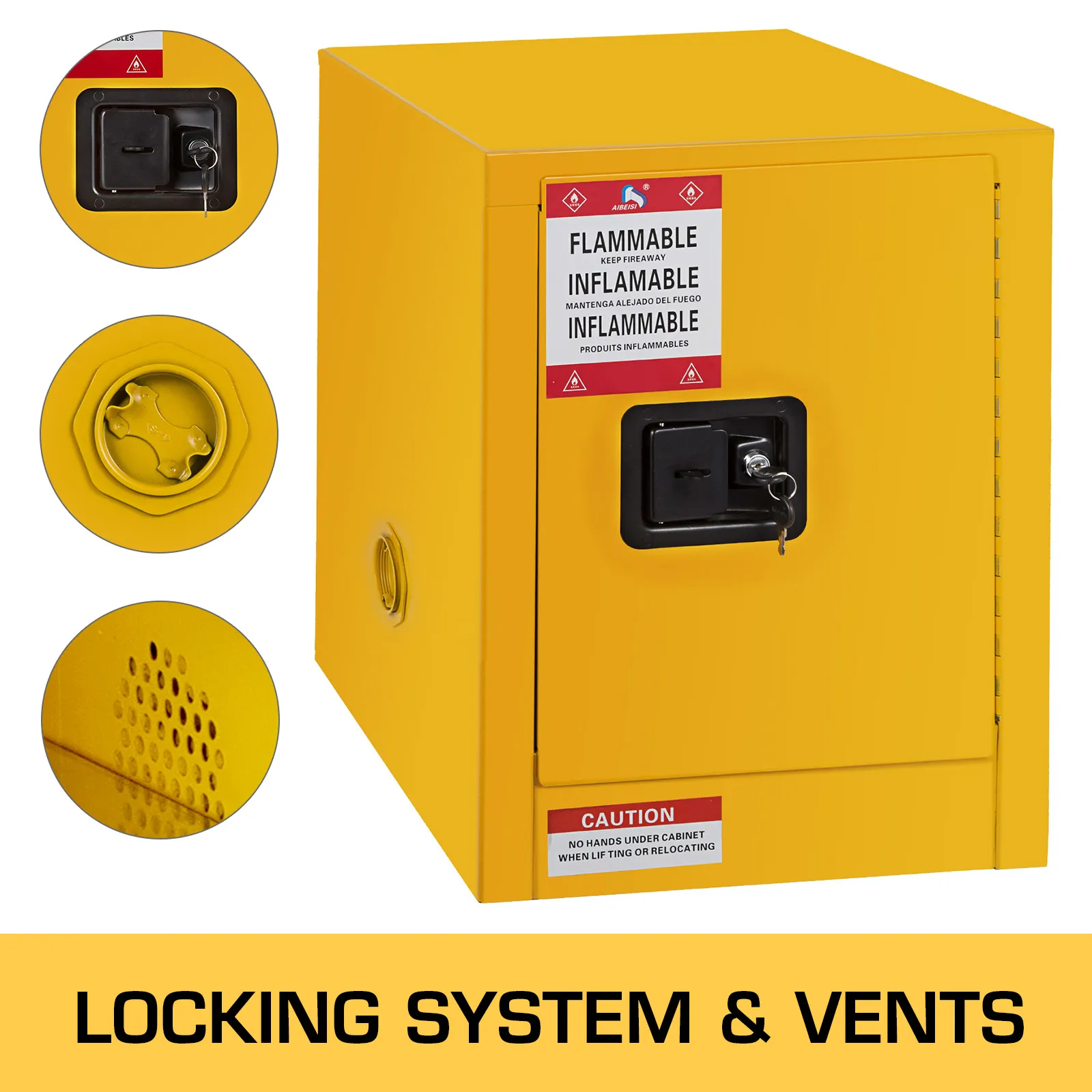 La sicurezza è una priorità assoluta per questo armadio per materiali infiammabili. Un efficiente meccanismo di bloccaggio garantisce lo stoccaggio sicuro e fuori dalla portata dei materiali infiammabili. Ciò è particolarmente importante per l'uso domestico, dove potrebbero essere presenti bambini e animali domestici. La serratura di sicurezza soddisfa anche i requisiti normativi per lo stoccaggio di materiali pericolosi. Il design dell'armadio lo rende facile da bloccare e sbloccare, offrendo praticità e sicurezza. Pertanto, è una scelta così affidabile per conservare in modo sicuro gli articoli combustibili in qualsiasi ambiente.