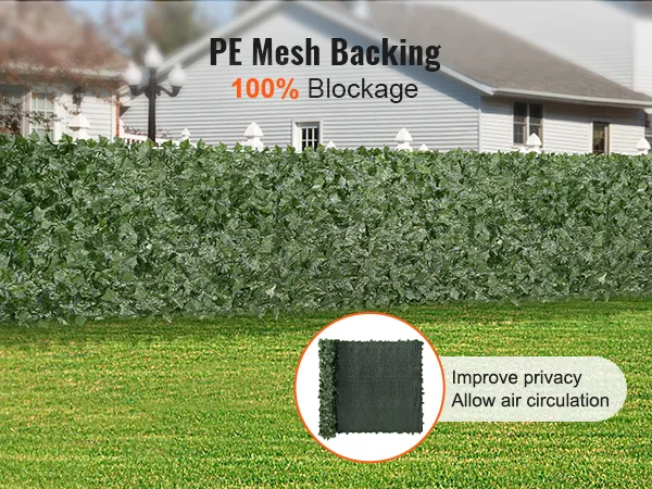 Blocco al 100%: le foglie sono posizionate vicine tra loro, formando una barriera naturale che blocca la luce solare intensa e le viste indesiderate. Nonostante la loro densità, lo schermo in finta edera consente comunque il flusso d'aria attraverso la parte posteriore in rete.