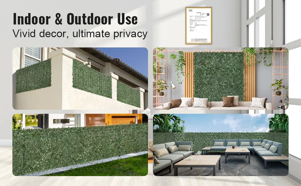 Questa recinzione per la privacy in edera è una soluzione pratica e intelligente per la privacy all'aperto. Esalta l'aspetto del tuo giardino, cortile o balcone. Può facilmente fondersi naturalmente con l'ambiente circostante. Il verde artificiale ti conferisce un aspetto lussureggiante e naturale. È ideale per nascondere aree antiestetiche o per creare un'oasi privata. La recinzione è leggera e semplice da maneggiare. Puoi usarla per coprire recinti, muri e altre superfici. Il suo design assicura che rimanga in posizione anche in condizioni ventose. Quindi, è perfetta per diversi ambienti esterni. La recinzione per la privacy in edera VEVOR è un'eccellente scelta per chiunque desideri aggiungere privacy e bellezza al proprio spazio esterno.