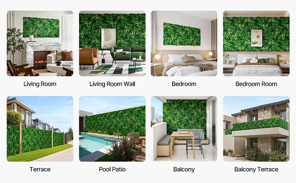 Versatile per molteplici scenari: adatta sia per spazi interni che esterni, questa parete vegetale può essere utilizzata per decorare il tuo balcone, patio, giardino o pareti interne. È anche una scelta perfetta per le celebrazioni stagionali, consentendoti di migliorare gli sfondi delle feste o gli spazi per eventi