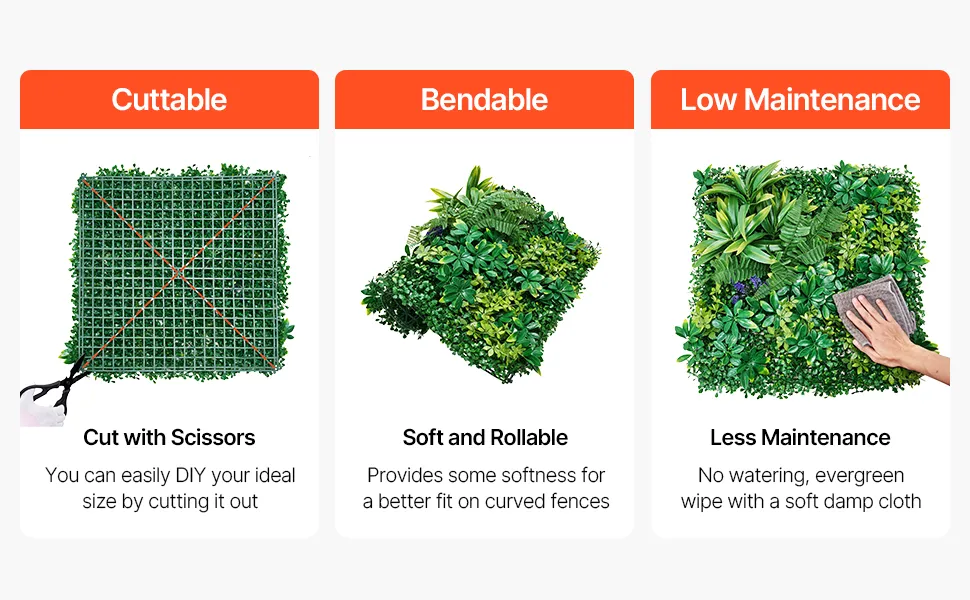 Versatile per molteplici scenari: adatta sia per spazi interni che esterni, questa parete vegetale può essere utilizzata per decorare il tuo balcone, patio, giardino o pareti interne. È anche una scelta perfetta per le celebrazioni stagionali, consentendoti di migliorare gli sfondi delle feste o gli spazi per eventi