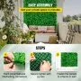 È semplice e senza problemi installare i pannelli di bosso artificiale VEVOR. Ogni confezione include fascette e fogliame extra per una maggiore praticità. Le linee zip semplificano il collegamento sicuro dei pannelli, assicurando che rimangano in posizione. Il fogliame aggiuntivo consente di riempire eventuali spazi vuoti o aggiungere più volume al design. Non importa se si appende il pannello a una parete o lo si fissa a una recinzione, il processo di installazione è rapido e semplice. Il design a scatto di questi pannelli semplifica il processo di creazione dell'aspetto desiderato, eliminando la necessità di strumenti aggiuntivi.