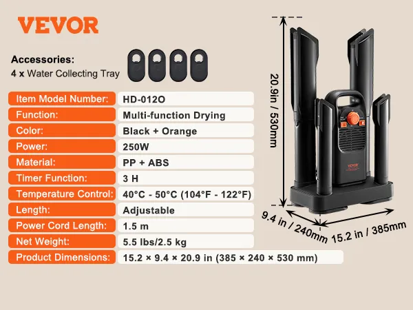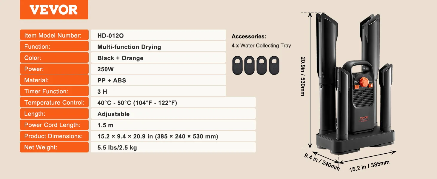 Asciugascarpe VEVOR a 4 tubi: di' addio all'umidità!