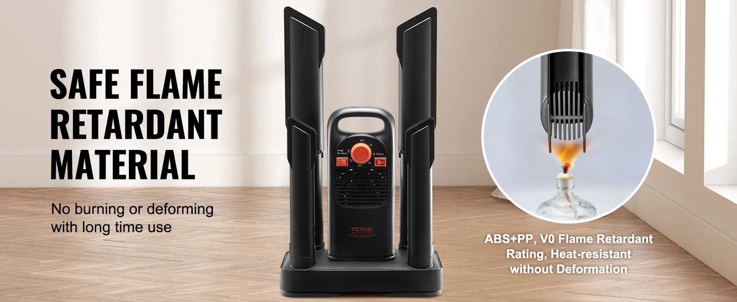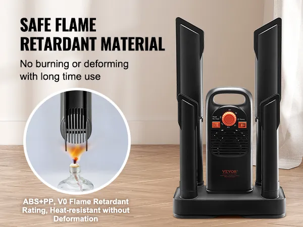 Il guscio esterno del nostro scaldascarpe è realizzato in materiali ignifughi PP+ABS con classificazione V0. Questo materiale resistente alle alte temperature non brucia né si deforma nemmeno con un uso prolungato.