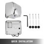 Questo asciuga mani ha un design di installazione a parete e può essere facilmente posizionato. Ha anche abbastanza accessori per aiutare ad essere assemblato insieme.