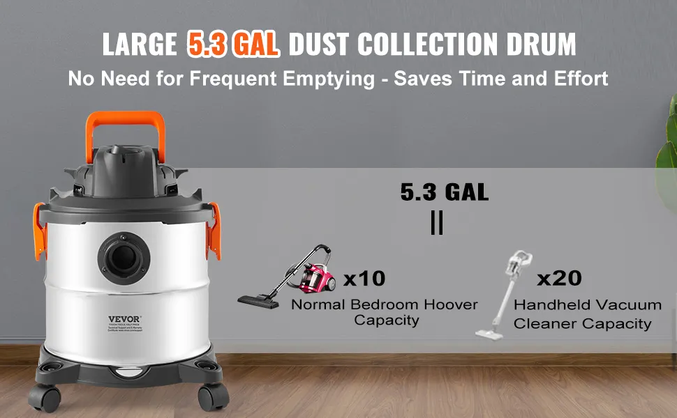 Elevata potenza di aspirazione: ottieni una velocità di pulizia senza precedenti con il nostro aspirapolvere in acciaio inossidabile dotato di elevata potenza di aspirazione e 6 cavalli di picco.