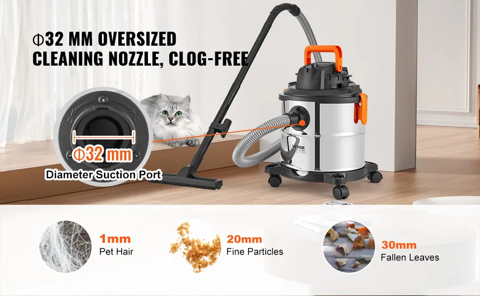 Il design allargato dell'ugello di pulizia garantisce che non si ostruisca facilmente, gestendo senza sforzo qualsiasi cosa, dai peli di animali domestici da 1 mm ai frammenti di foglie da 30 mm.