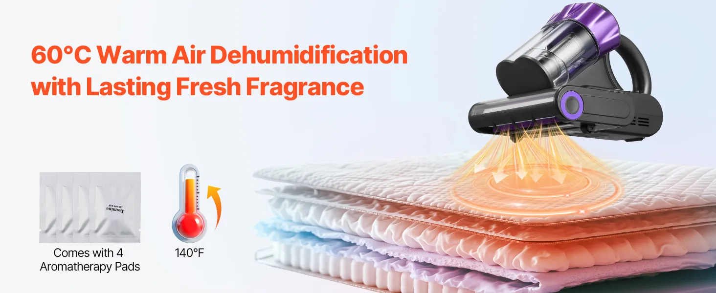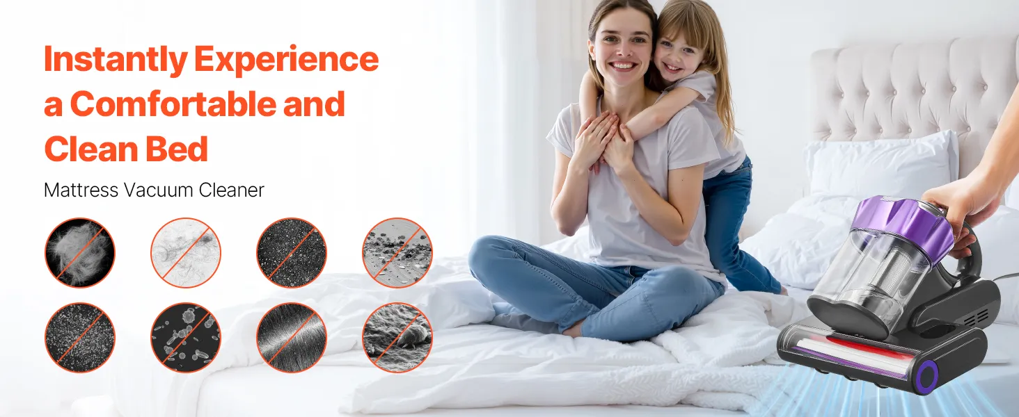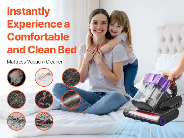 Dotato di tecnologia di pulizia avanzata, questo aspirapolvere per materassi penetra in profondità nella biancheria da letto per rimuovere a fondo peli, polline, polvere, scaglie di pelle e altro ancora. È la scelta ideale per le case con bambini e animali domestici.