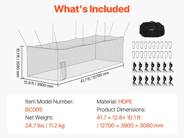Realizzata con rete in HDPE, la nostra gabbia da battuta portatile autoportante (solo rete) offre una durata e una stabilità eccezionali in tutte le condizioni. Trattata con trattamento anti-sole per resistere alla luce solare, resiste all'usura e alla corrosione.