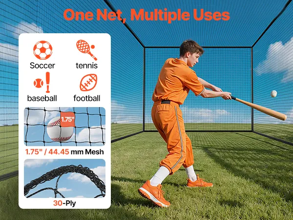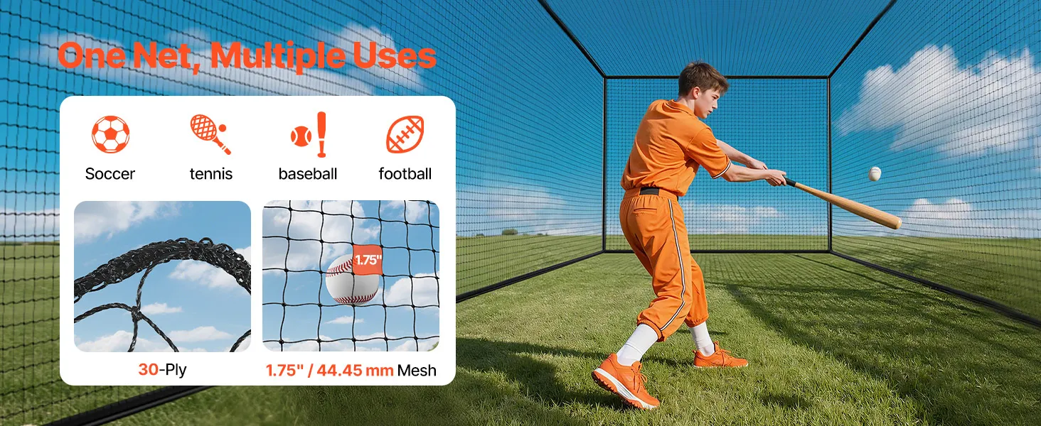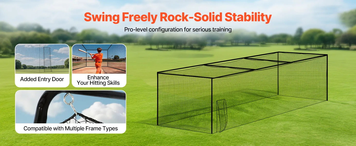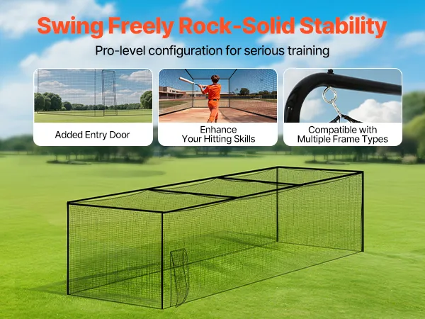 Facile accesso: progettata per la praticità, questa gabbia da baseball e softball VEVOR (solo rete) include una porta con chiusura a strappo per facilitare l'ingresso e l'uscita. Adatta ad atleti di qualsiasi età