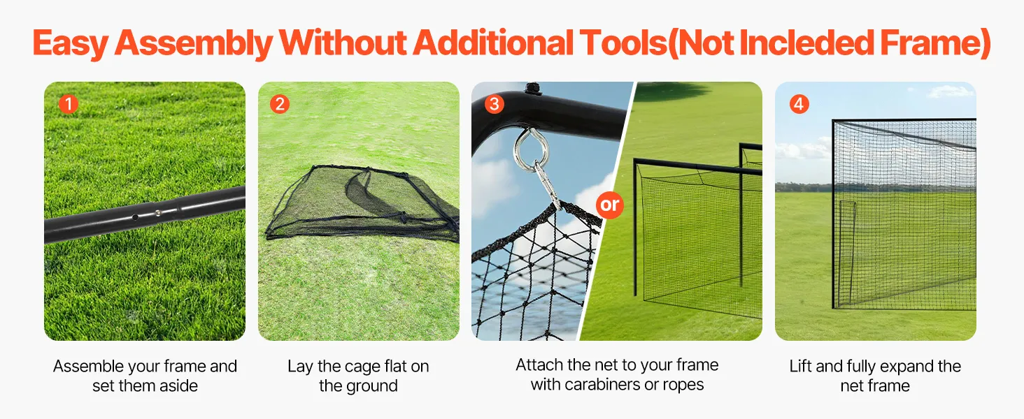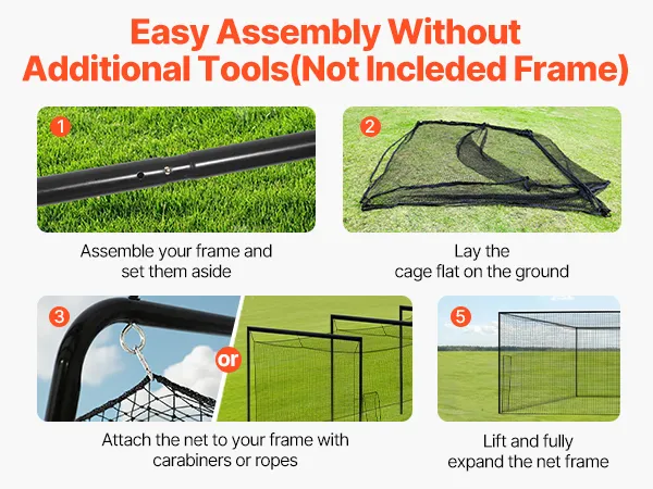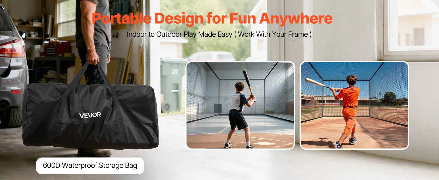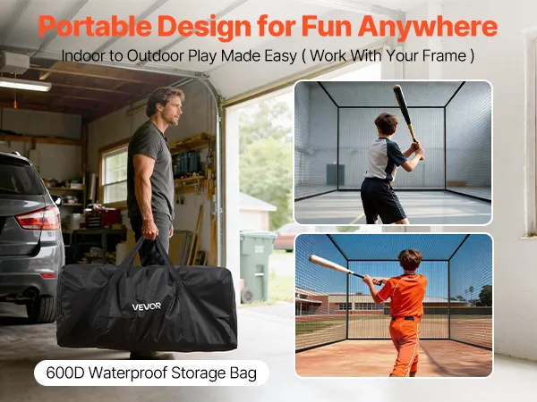 Grazie alla sua struttura semplice e a tutti gli accessori inclusi, questa gabbia da battuta per softball VEVOR (solo rete) può essere assemblata in pochi minuti. La borsa per il trasporto inclusa consente un facile spostamento su campi al chiuso o all'aperto.
