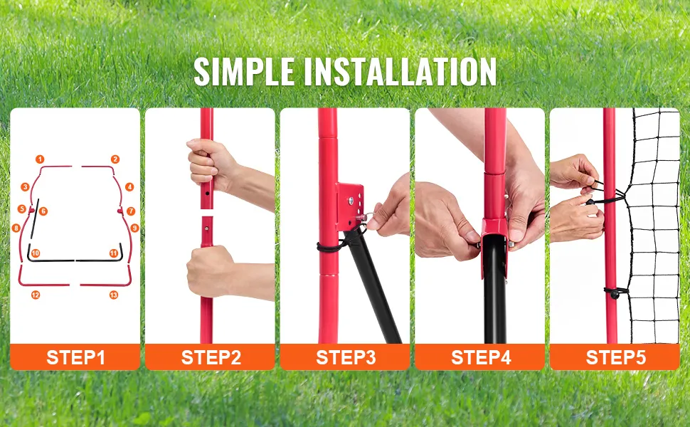 Robusta struttura in acciaio: realizzata con robusto telaio in acciaio Q195 e rete di rimbalzo in PE resistente ai raggi UV. Include 4 robusti montanti da pavimento in grado di sopportare carichi elevati senza ribaltarsi o crollare. I materiali robusti sono resistenti all'usura.