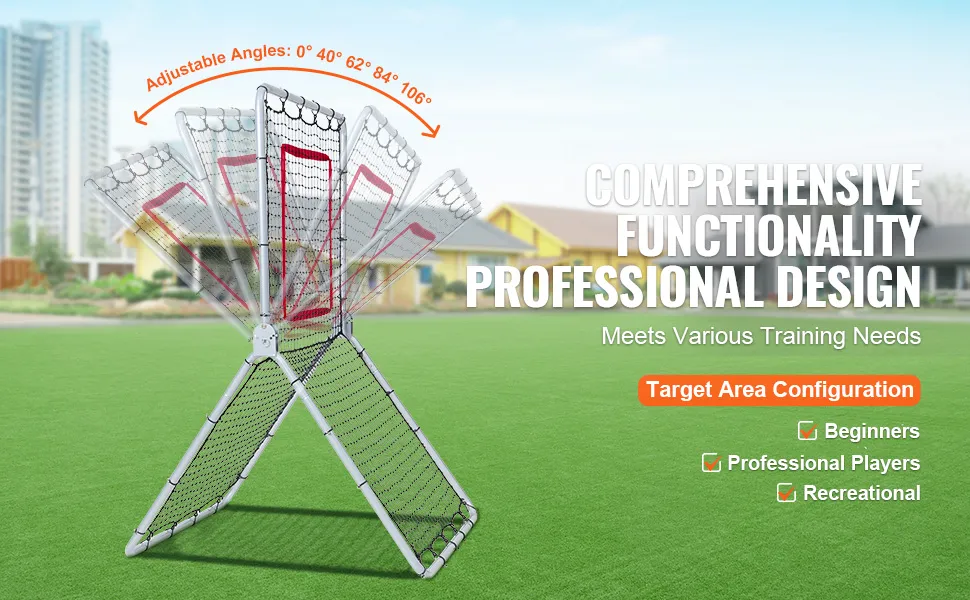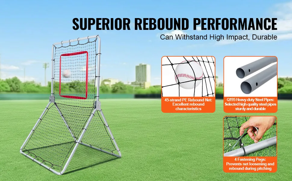 Completo: la rete da baseball ha 5 angoli regolabili (0°, 40°, 62°, 84°, 106°) e impostazioni dell'area bersaglio, dotata di una rete di rimbalzo in PE ad alta densità a 45 fili per un rimbalzo superiore. Ti consente di praticare tecniche di presa e lancio da diverse angolazioni, tra cui palle alte, line drive e grounder.