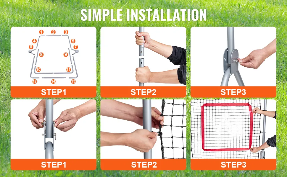 Facile assemblaggio: l'installazione semplice consente a una persona di impostare rapidamente la rete da rimbalzo da baseball, consentendoti di iniziare ad esercitarti senza indugio. Ideale per sessioni di studio da solista all'interno e all'esterno, garantendo comodità e flessibilità.