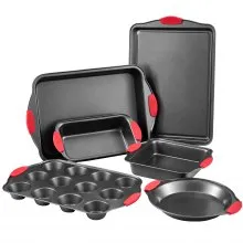 VEVOR Set di Pentole, 6 Pezzi, Piatti e Vassoi di Pentole in Acciaio al Carbonio Antiaderenti, Set di Pentole Impilabili per Forno da Cucina con Manici in Silicone, per Cuocere Biscotti, Torte, Muffin