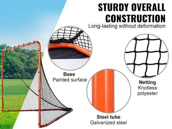 Costruiamo questa porta da lacrosse portatile con un robusto telaio in acciaio calibro 17 verniciato a polvere da 1,5 pollici e una rete in polipropilene resistente da 4 mm trattata UV. Tutte le condizioni atmosferiche possono resistere al suo design, rendendolo una scelta affidabile per l'allenamento all'aperto. Che ci sia il sole, la pioggia o la neve, questa rete da lacrosse rimane forte e affidabile, offrendo un valore duraturo per giocatori di tutti i livelli di abilità.