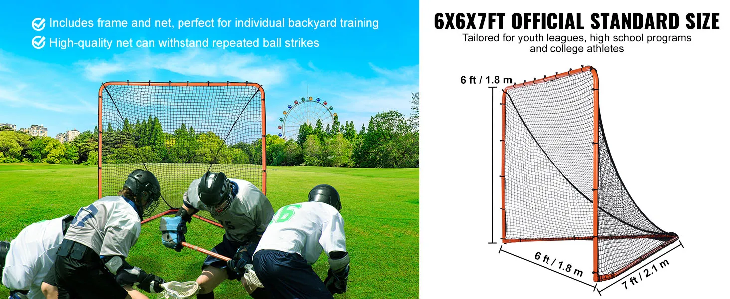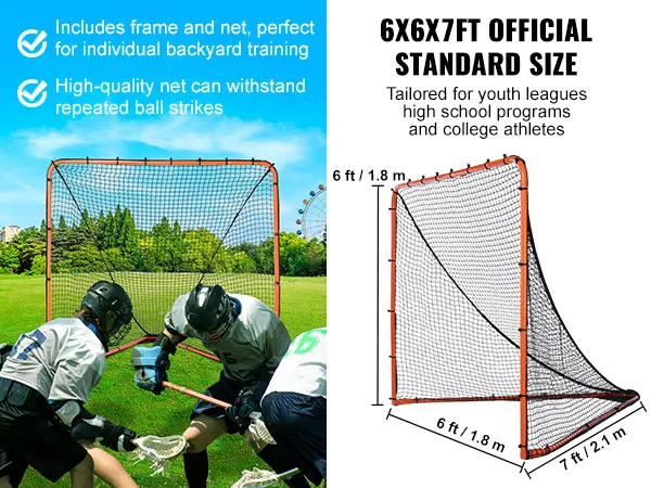 Questa versatile porta da lacrosse è perfetta per giocatori di tutti i livelli, dai principianti agli atleti avanzati. Che tu stia affinando le tue abilità di tiro o praticando attività ricreative, questa porta soddisfa diverse esigenze di allenamento. Le sue dimensioni di 6x6x7 piedi offrono ampio spazio per diversi esercizi di allenamento, rendendola perfetta per l'allenamento di lacrosse in giardino o per sessioni di allenamento competitive.