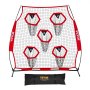 VEVOR 1828.8x1828.8mm Football Trainer Throwing Net, Training Throwing Target Practice Net with 5 Target Pockets, Knotless Net Includes Straps and Portable Carry Case, Improve QB Throwing Accuracy,Red