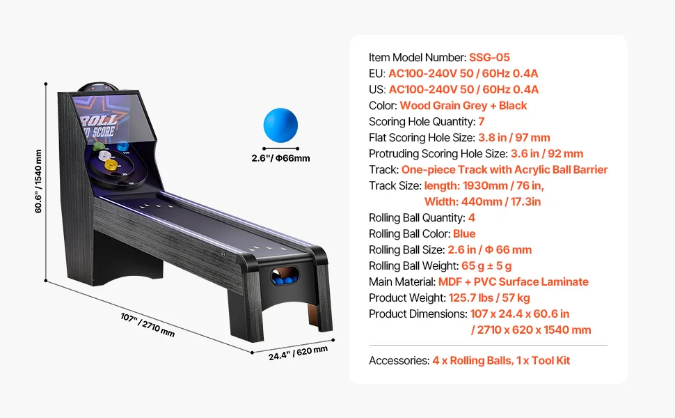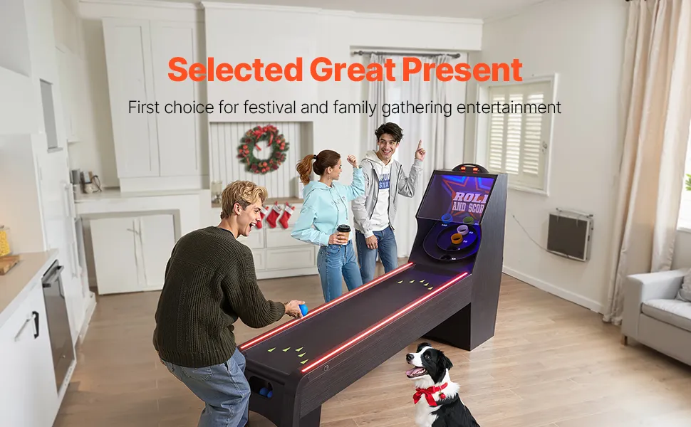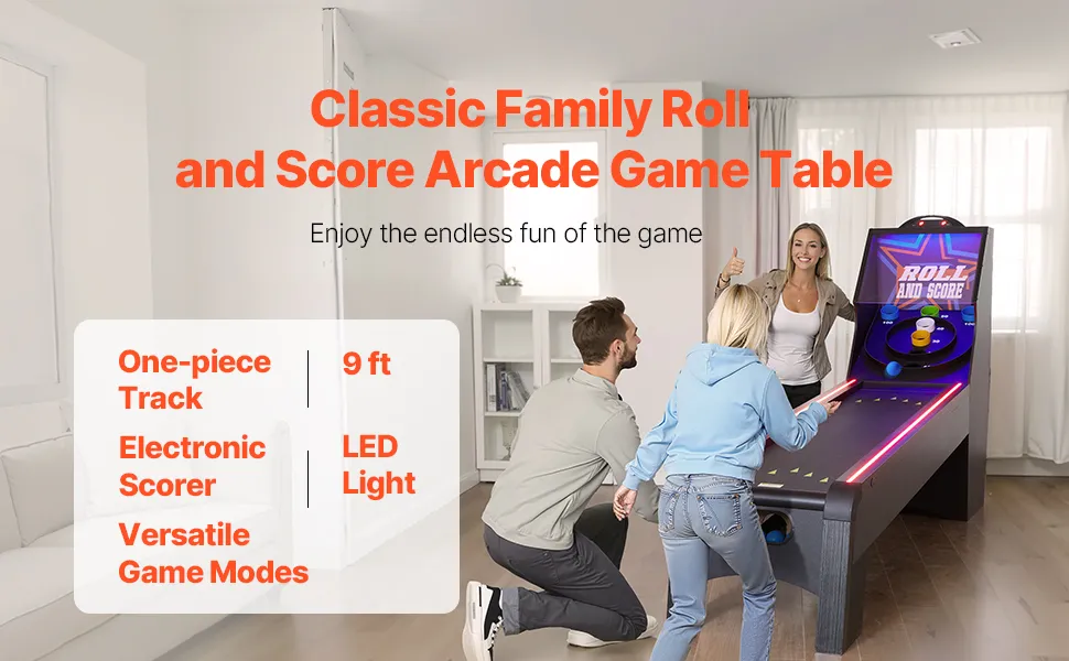 VEVOR Roll e Score Classico Tavolo da Gioco Arcade 2743 mm, per Macchina con Segnapunti Elettronico a LED, Suono, Ritorno Automatico della Palla, Sala Giochi Ricreativa 4 Palline Incluse