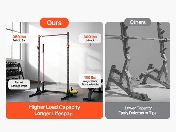 Progettato con materiali rinforzati e un telaio più robusto, questo squat rack per palestra domestica resiste alla deformazione, offrendo al contempo un supporto di carico superiore e una durevolezza a lungo termine, consentendoti di allenarti con maggiore sicurezza.