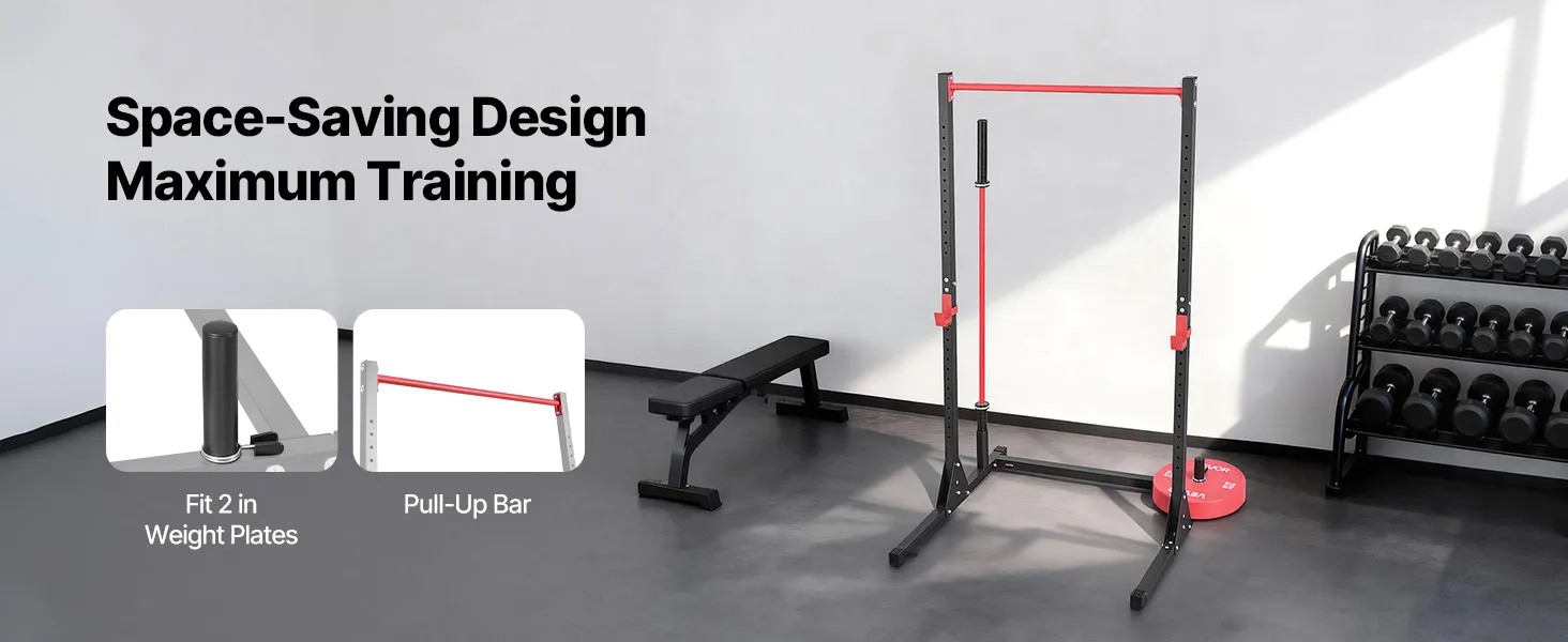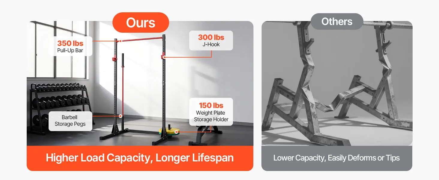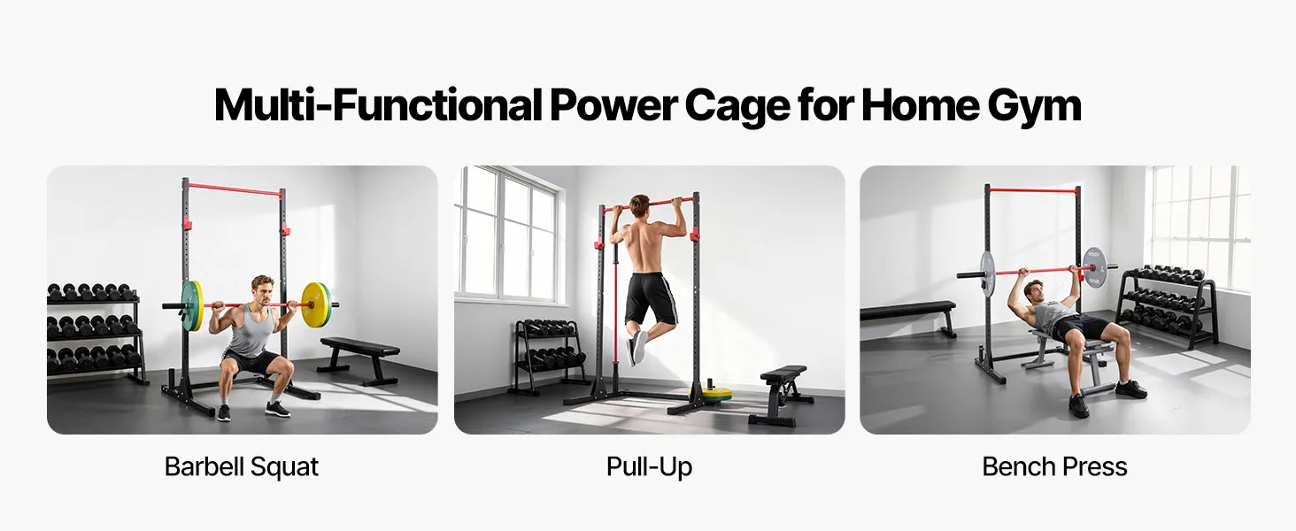 Migliora la tua esperienza di fitness a casa con questa gabbia VEVOR. Realizzata in resistente acciaio al carbonio, con un'elevata capacità di carico, una struttura stabile e un'altezza regolabile del gancio a J, offre allenamenti sicuri, efficaci e sicuri per rafforzare il corpo.