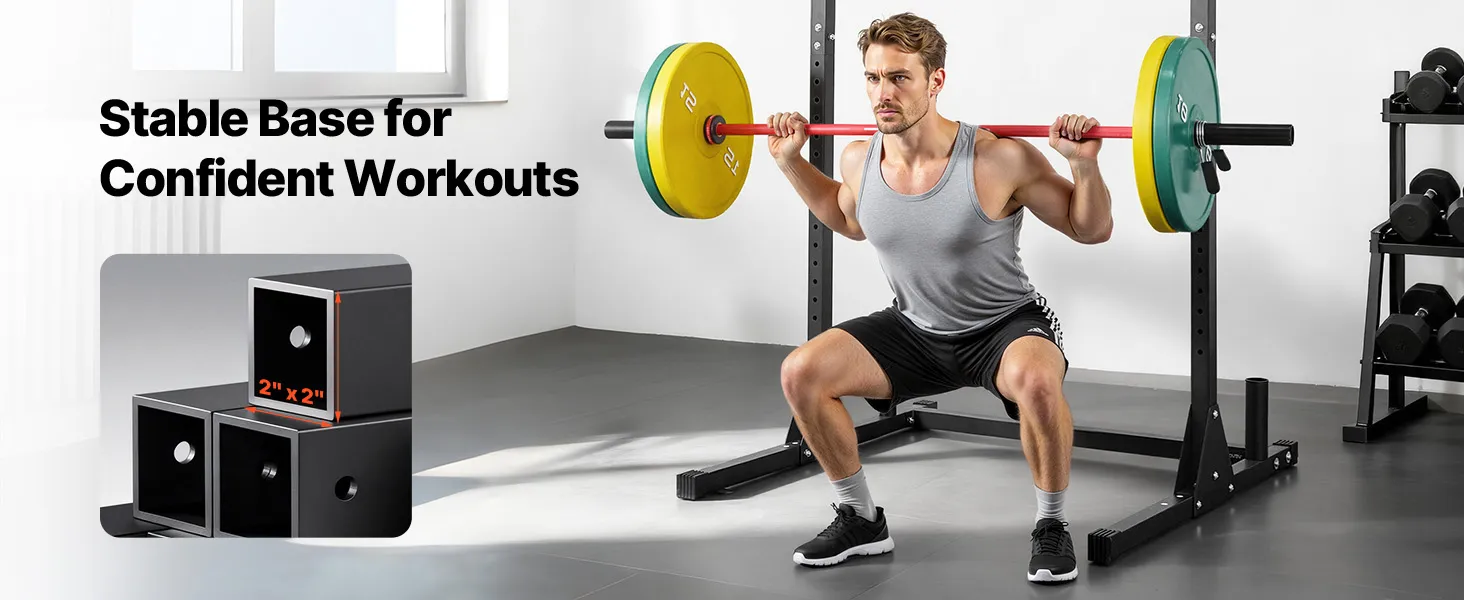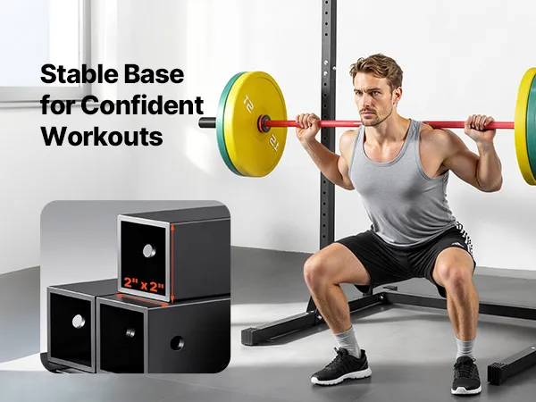 Costruito con un telaio principale in acciaio da 2" x 2" e tubi ispessiti, questo attrezzo per l'allenamento con squat rack offre un supporto solido e oscillazioni ridotte, garantendo un allenamento della forza più sicuro e affidabile.