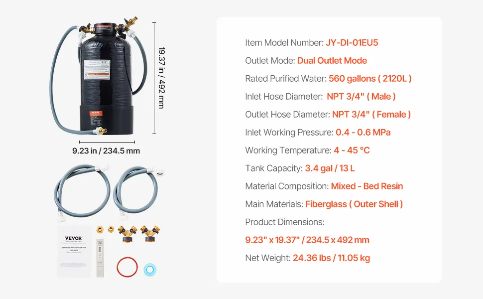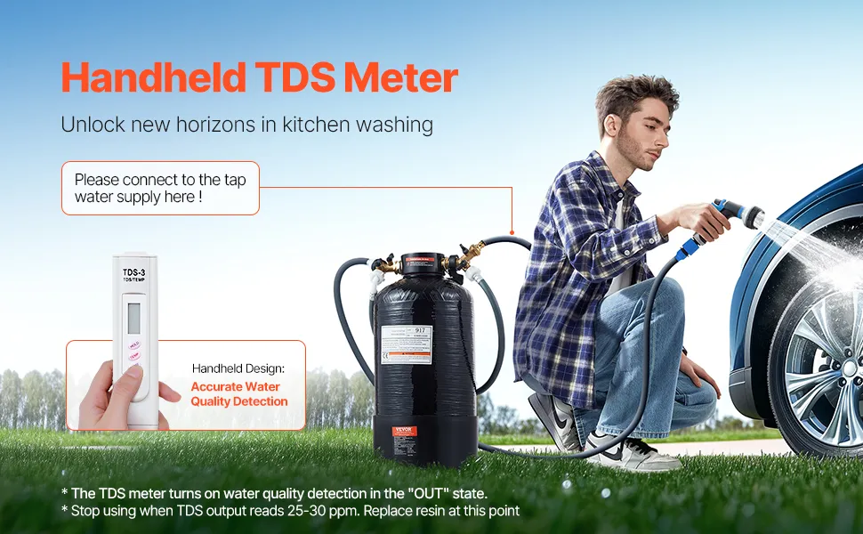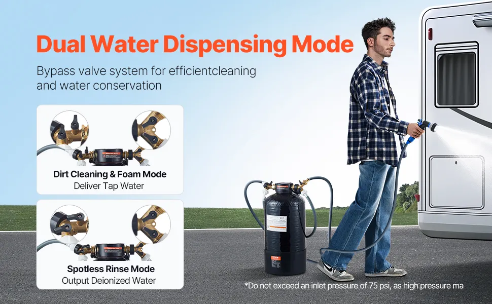 VEVOR Sistema di Acqua Deionizzata per Autolavaggio, Deionizzatore d'Acqua Premium con Misuratore TDS , Filtro Antimacchia per Acqua Senza Macchie con Modalità a Doppia Uscita, per Auto Camper Moto