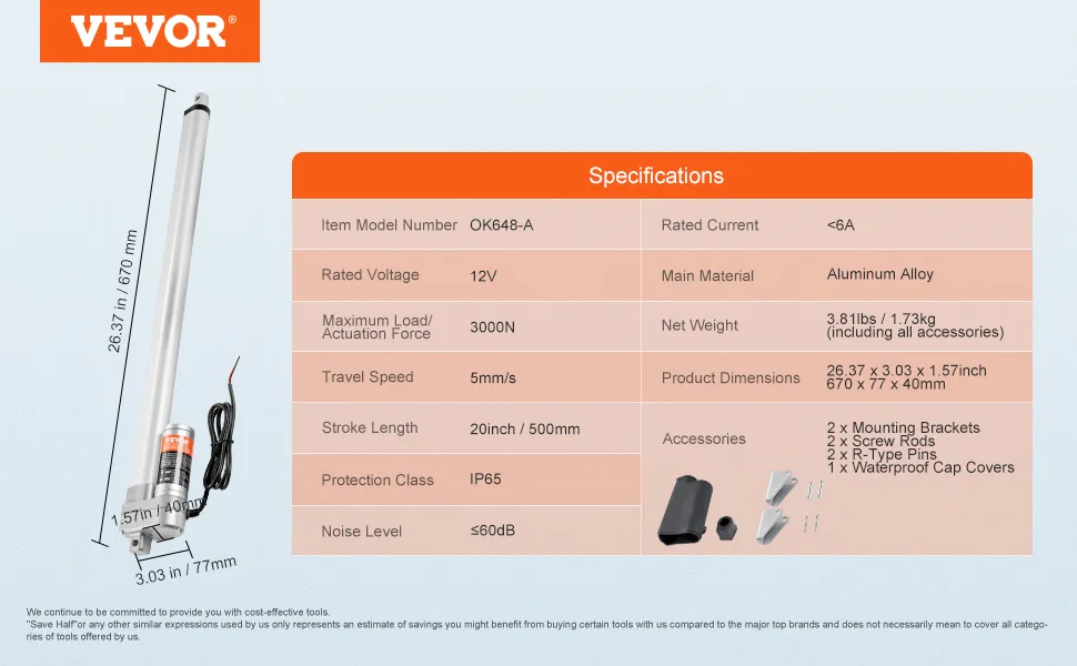 Ha un livello di rumore inferiore a 60 dB. Ciò garantisce un funzionamento silenzioso in vari contesti, ideale per l'uso in aree residenziali o ambienti sensibili. I bassi livelli di rumore lo rendono ideale per mobili e sistemi di automazione. Può essere utilizzato in macchinari e trasporti senza causare disturbi. Il nostro attuatore fornisce prestazioni efficienti senza rumore. Il design previsto gli consente di funzionare silenziosamente, migliorando l'usabilità. L'attuatore VEVOR può essere utilizzato in più scenari senza preoccupazioni.