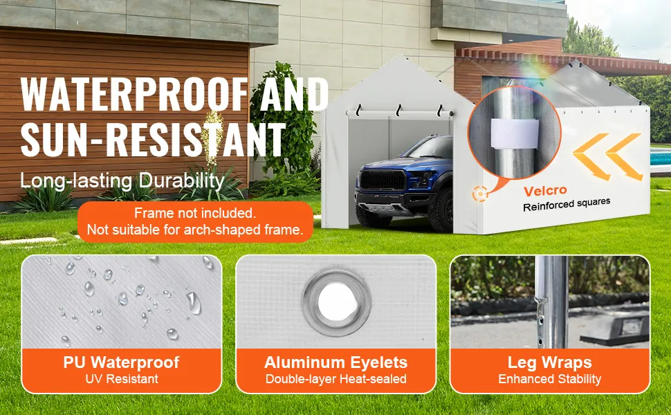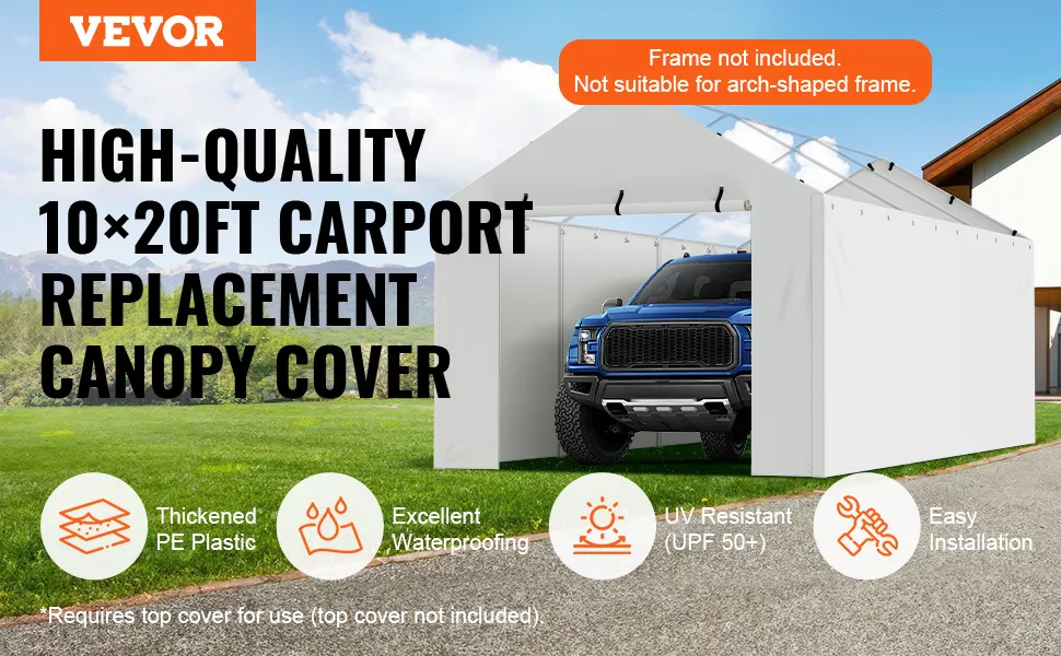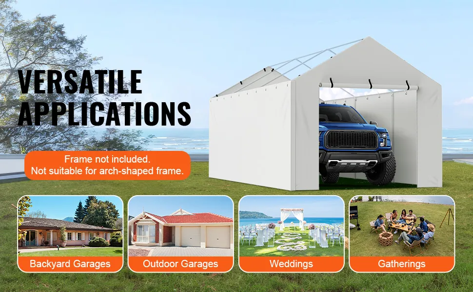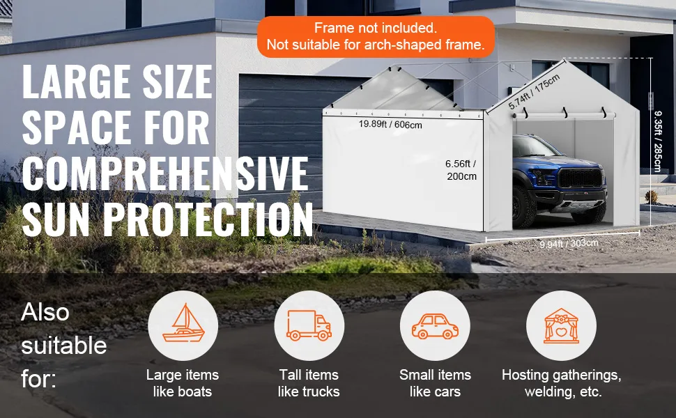 La copertura è compatibile con i telai standard da 10x20 piedi per carport. Si adatta perfettamente a questi telai, così puoi usarla come sostituto per coperture vecchie o danneggiate. La copertura è semplice da installare sui telai esistenti e ha tutti gli accessori necessari per l'installazione. Questa compatibilità assicura una sostituzione senza problemi. Questa scelta comoda e versatile ti consente di utilizzarla con vari telai per carport.