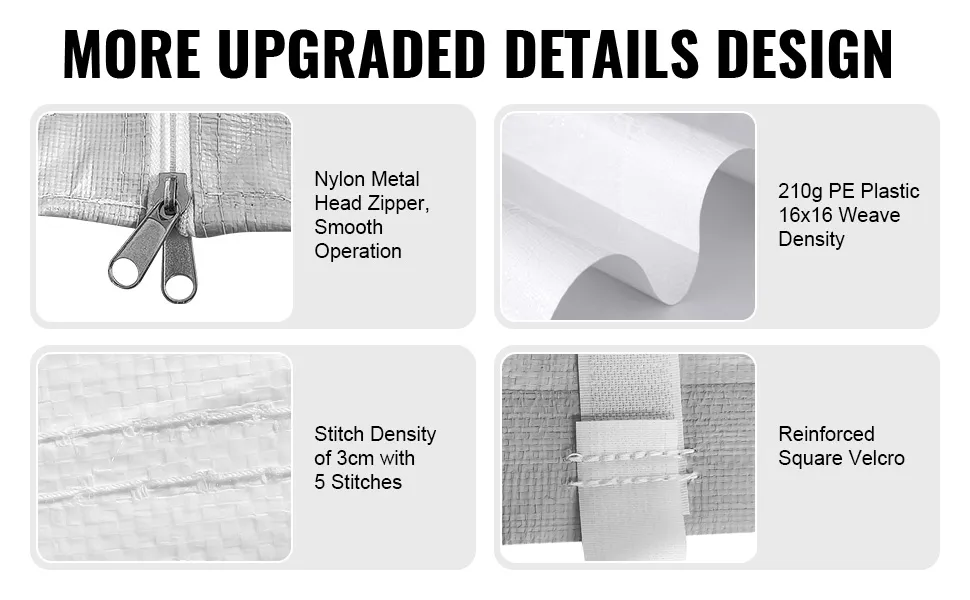 Materiale durevole: realizzato in tessuto di plastica PE con un motivo a trama 16x16, questo tessuto è spesso e resistente all'accumulo di acqua e all'usura. Le cuciture termosaldate a doppio strato garantiscono durata.