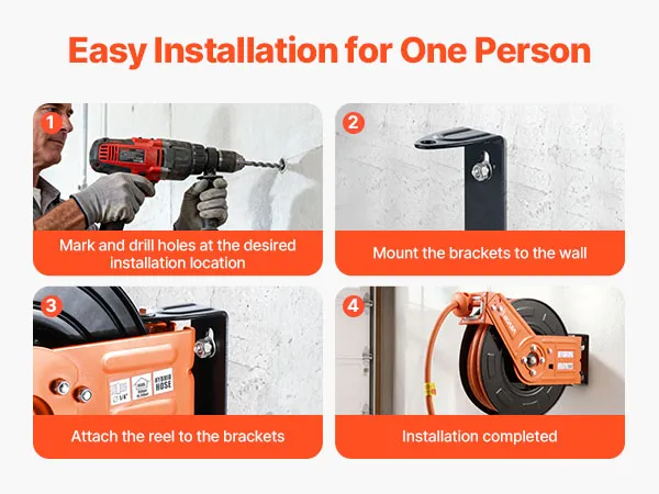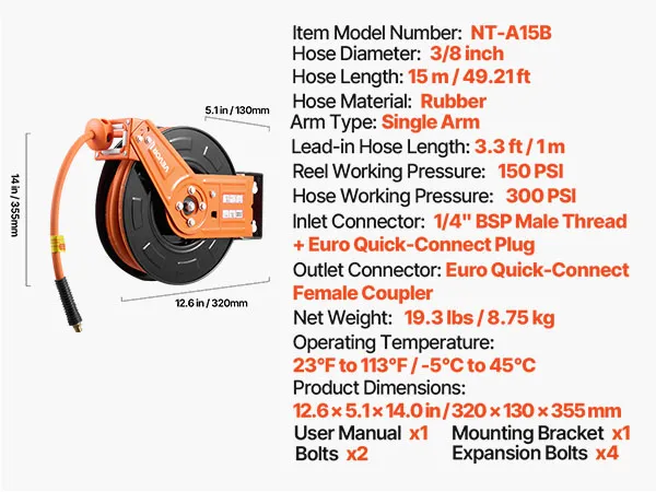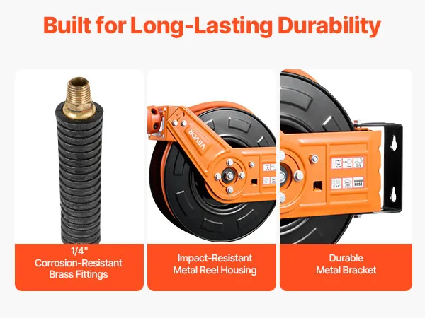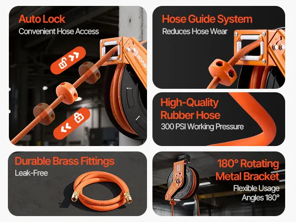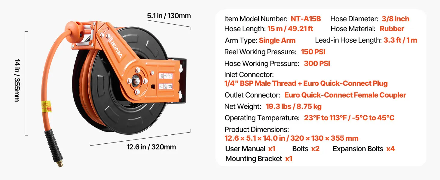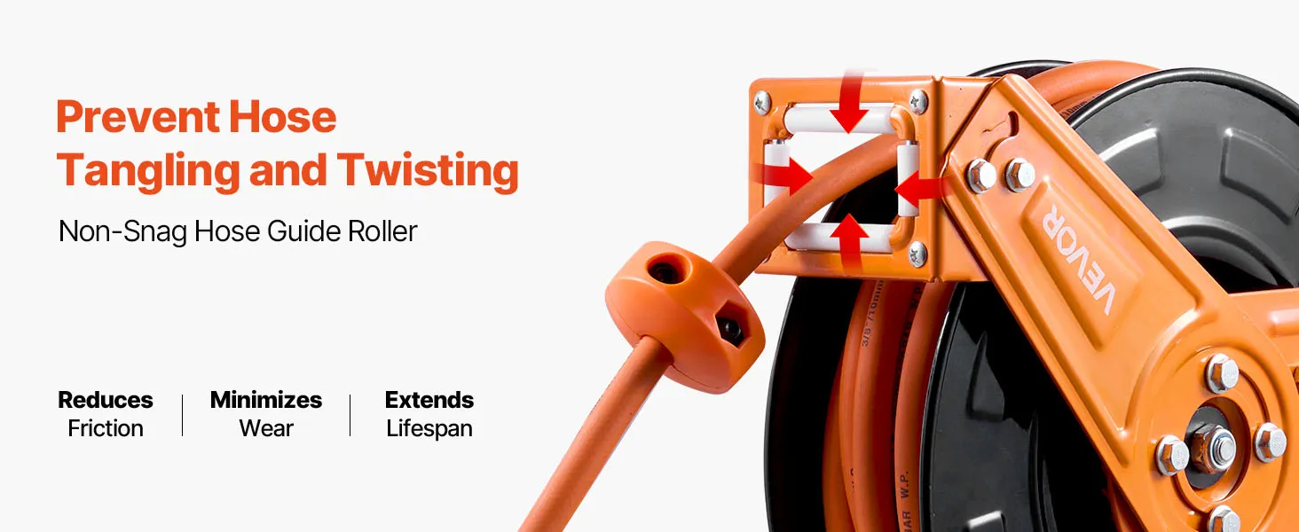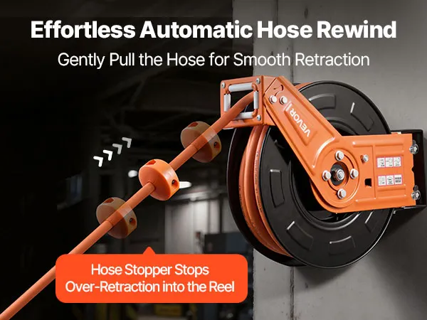 Niente più tubi aggrovigliati: l'avvolgitubo retrattile VEVOR include un tubo in gomma da 15 m x 9,5 mm e un tubo di alimentazione da 1 m per mantenere l'area di lavoro ordinata e senza grovigli. Niente più tubi che strisciano sul pavimento