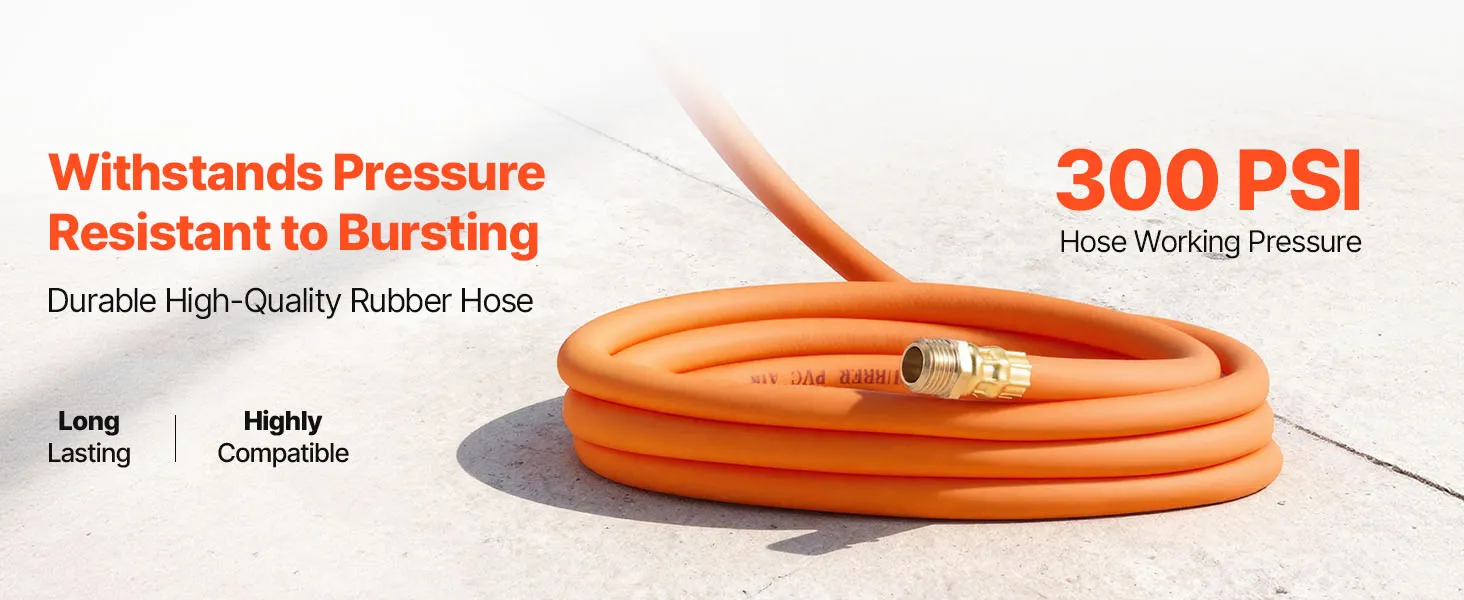 Resistente e flessibile: il nostro tubo flessibile in gomma resiste fino a 300 PSI e funziona in modo affidabile da -5 °C a 45 °C. La protezione a molla integrata e il manicotto protettivo in gomma offrono una protezione extra per tubo e raccordo