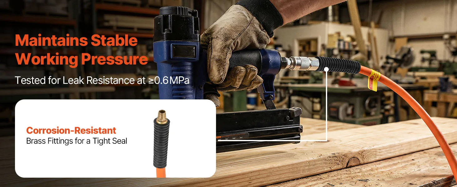 Facile da collegare e multiuso: il nostro tubo dell'aria ha superato i test di tenuta stagna e si collega facilmente ai tuoi utensili pneumatici e al compressore con il raccordo BSP da 1/4". Ideale per gonfiare pneumatici, verniciare a spruzzo