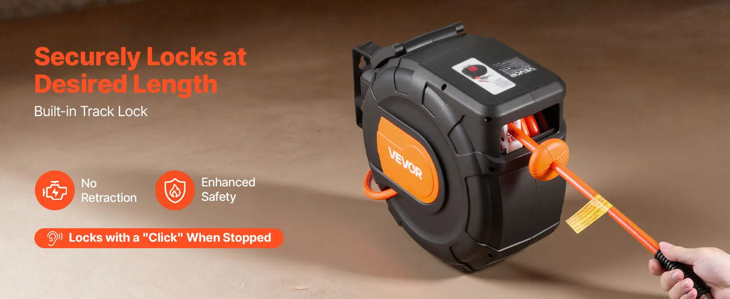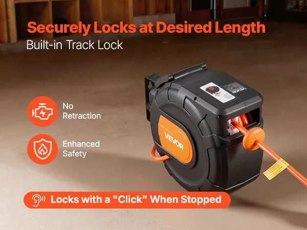 Il nostro avvolgitubo per aria compressa con riavvolgimento automatico è dotato di un meccanismo di bloccaggio integrato che consente di regolare facilmente la lunghezza del tubo e di bloccarlo saldamente nella posizione desiderata.
