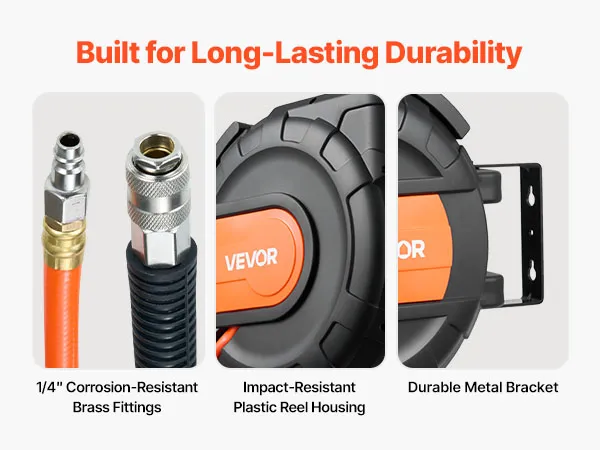 Resistente e flessibile: il tubo flessibile in PVC resiste fino a 300 PSI e funziona in modo affidabile da -5°C a 45°C, resistendo a torsioni, schiacciamenti e scoppi per un flusso d'aria regolare. L'avvolgitubo in plastica è leggero e resistente