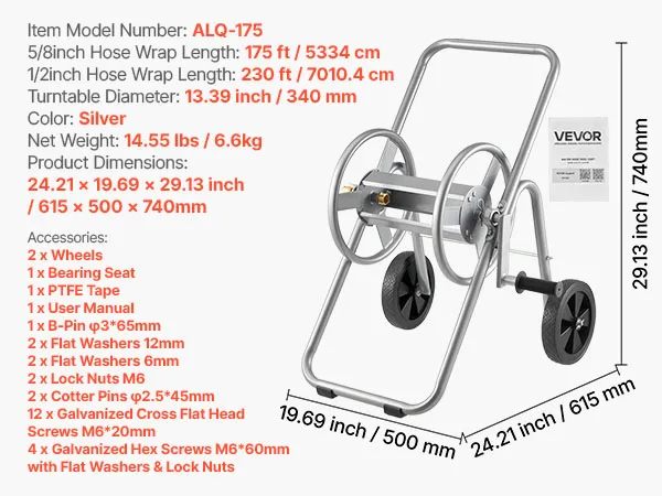 Questo carrello è perfetto sia per uso domestico che commerciale. Ha un'elevata capacità e una costruzione durevole. Lo rendono adatto a vari compiti. Non importa se ne hai bisogno per un piccolo giardino o una grande fattoria, questo carrello può gestirlo. Le solide ruote in PVC assicurano una semplice manovrabilità. Ciò lo rende comodo per diversi ambienti. La struttura robusta assicura che possa resistere a un uso intenso in molte impostazioni. Quindi, è l'ideale per applicazioni commerciali. Puoi usarlo facilmente. L'avvolgitubo per impieghi gravosi VEVOR soddisfa le esigenze dei proprietari di case e dei professionisti.