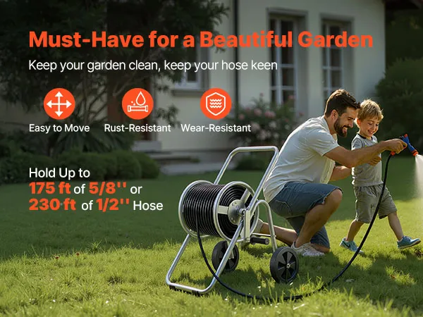 È realizzato in acciaio verniciato a polvere. Il materiale del carrello avvolgitubo VEVOR è progettato per l'uso all'aperto. Pertanto, puoi utilizzarlo in giardini, cortili e prati. Può gestire fino a 175 piedi di tubo da 5/8'' e questa capacità lo rende versatile per vari compiti. Il carrello è inoltre dotato di ruote in PVC solido. Queste ruote consentono anche un semplice spostamento su diversi terreni. La costruzione robusta garantisce prestazioni di lunga durata. Cosa significa questa durata? Ciò significa che il carrello può sopravvivere a condizioni meteorologiche avverse. Grazie alla sua struttura robusta, ottieni un fantastico ritorno sull'investimento. Il carrello è inoltre dotato di raccordi in ottone a prova di perdite, che garantiscono una vestibilità adeguata. Nel complesso, il carrello per tubo da giardino VEVOR è uno strumento essenziale per qualsiasi spazio all'aperto. Puoi facilmente gestire lavori difficili senza dover fare molti sforzi.