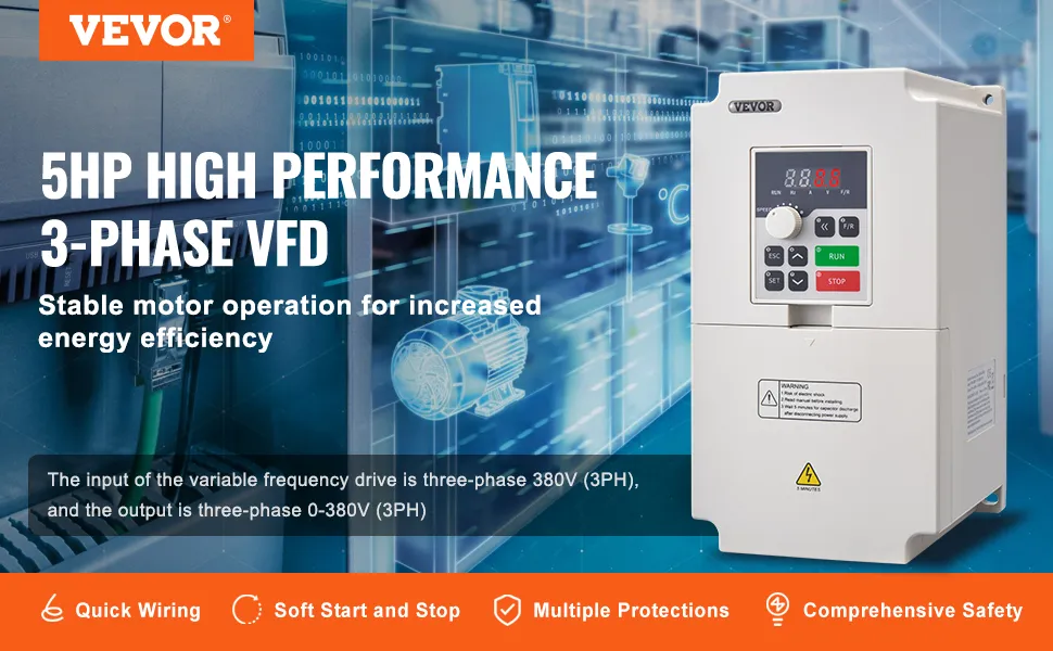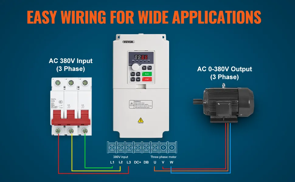 Ampia versatilità: il nostro VFD è ideale per azionare motori trifase in macchinari diversi, tra cui router CNC, macchine CNC, fresatrici, trapani, compressori, pompe, smerigliatrici, centrifughe e altre macchine di controllo della velocità