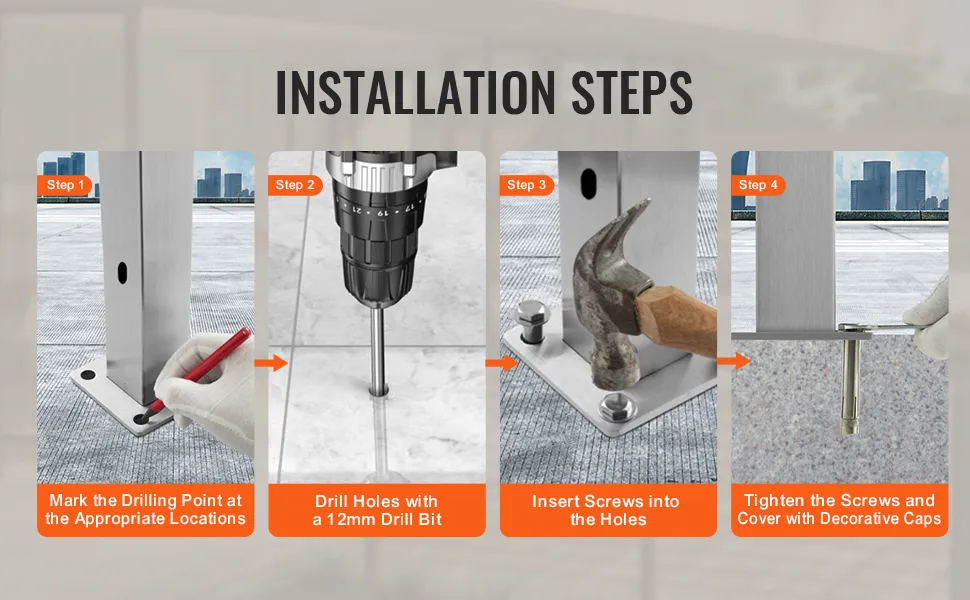 Il nostro palo per corrimano per cavi è realizzato interamente in acciaio inossidabile SUS304, con una distanza tra i fori di 3,14 pollici conforme agli standard di costruzione. Con una struttura senza saldature e un'elegante finitura argento, sono adatti a vari ambienti.