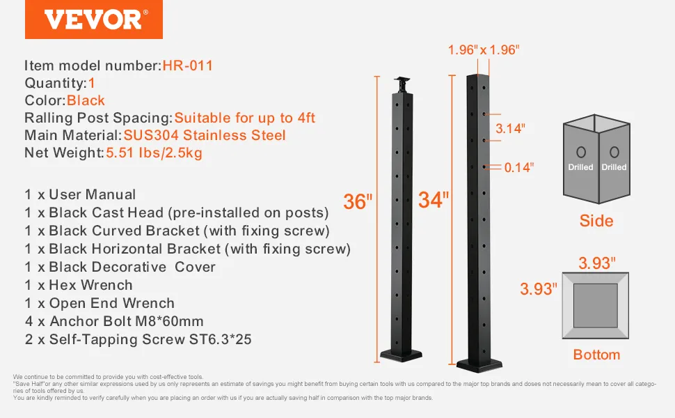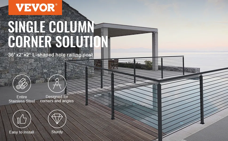 Il palo per ringhiera in cavo VEVOR ha 10 fori preforati a forma di L. Questi fori semplificano l'installazione del palo. Consentono sia il sezionamento orizzontale che i pali terminali strutturali. Questo design semplifica il processo di installazione. Garantisce inoltre una vestibilità sicura. Puoi utilizzare il palo per vari angoli di ringhiera fai da te. I fori a forma di L offrono flessibilità. Quindi, rendono questo palo versatile per diverse applicazioni. Ciò consente di risparmiare tempo e fatica durante l'installazione. Quindi, puoi concentrarti su altri aspetti del tuo progetto. Per coloro che desiderano un'installazione senza problemi, questo palo è perfetto!