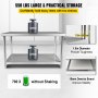 È costruito per durare. Con una capacità di carico del ripiano superiore di 330 libbre, gestisce facilmente i compiti più pesanti. Il ripiano inferiore supporta anche 220 libbre aggiuntive, offrendo spazio di archiviazione extra per vari articoli. L'elevata capacità di carico di questo tavolo garantisce che possa contenere attrezzature e utensili da cucina pesanti. La sua struttura in acciaio inossidabile garantisce durata e affidabilità. Puoi fidarti di questo tavolo da preparazione per qualsiasi compito difficile. Grazie alla sua solida qualità costruttiva, puoi contare sul tavolo da preparazione in acciaio inossidabile VEVOR per longevità e prestazioni affidabili in caso di utilizzo intenso.
