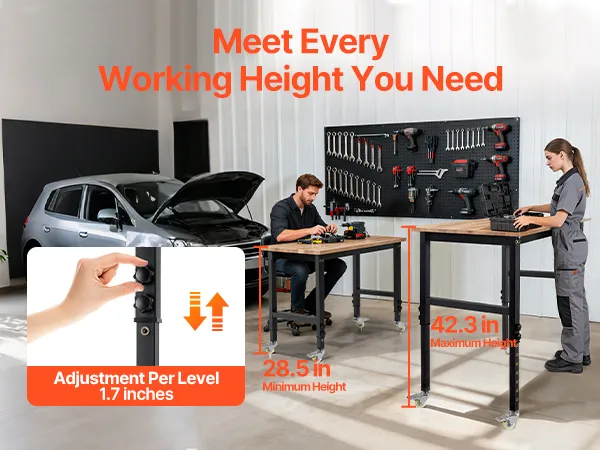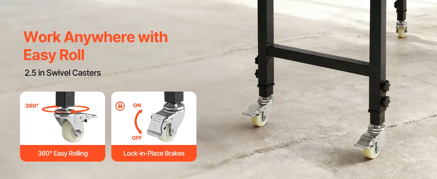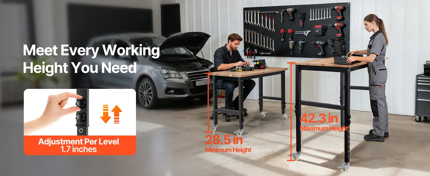 Questo banco da lavoro regolabile da 48 x 23,6 pollici supporta fino a 1.500 libbre e offre 1.132,8 pollici quadrati di spazio di lavoro. Offre 8 impostazioni di altezza per adattarsi a levigatura, assemblaggio, riparazioni e altro ancora.