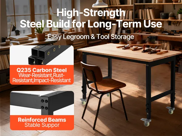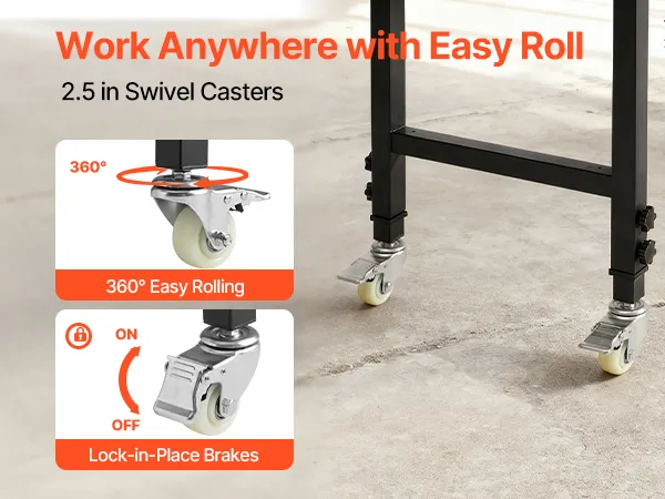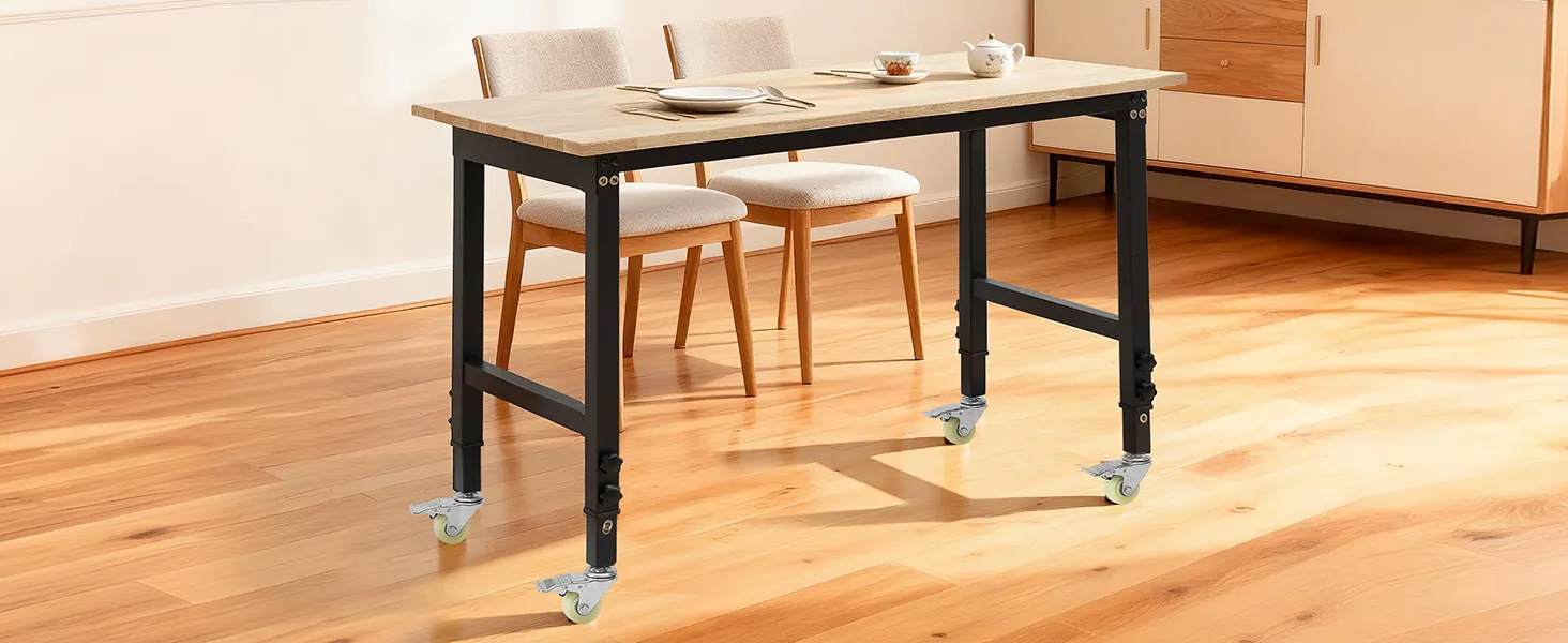 Facile mobilità: questa postazione di lavoro in legno di quercia è dotata di quattro ruote girevoli da 2,5 pollici con freni. Puoi spostare la panca dove vuoi e bloccarla in posizione per un lavoro stabile