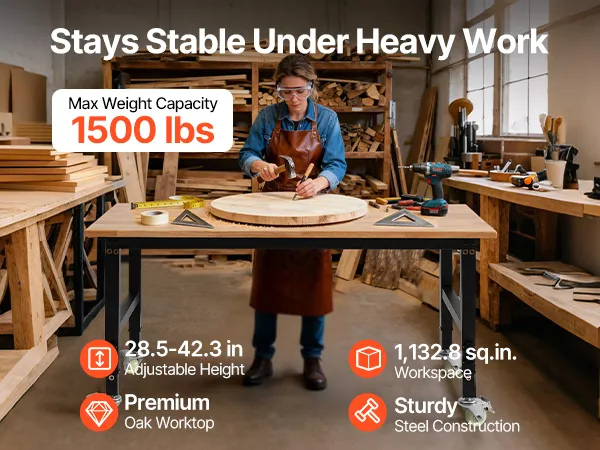 Capacità di carico pesante di 1.500 libbre: questo banco da lavoro regolabile offre una superficie di 48 x 23,6 pollici e supporta fino a 1.500 libbre. Puoi sistemare gli strumenti e affrontare il taglio, la perforazione