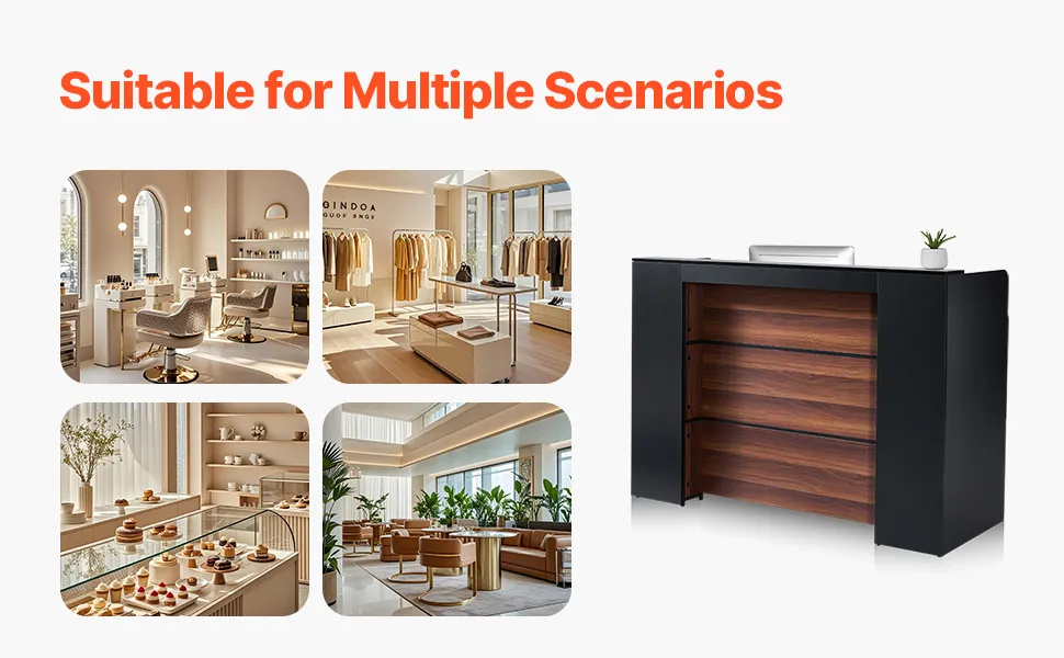 Costruzione stabile e affidabile: questo banco reception è realizzato in pannelli di fibra ad alta densità (MDF). Il piano del tavolo e il telaio sono strutturalmente stabili e hanno un'elevata capacità di carico, garantendo durata e longevità