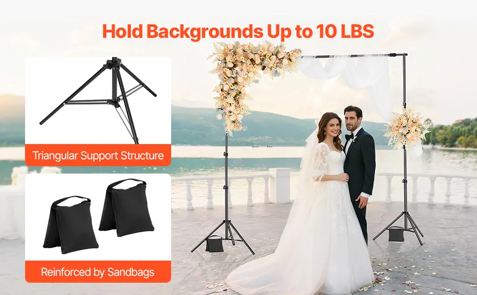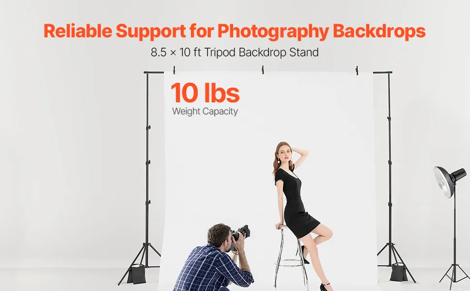 Questo supporto per fondale è dotato di 2 supporti per treppiede per stabilità e durata e ha una capacità di carico di 4,5 kg. Le sue dimensioni regolabili si adattano a sfondi di grandi dimensioni ed è ideale per studi, uso domestico, hotel e palcoscenici.