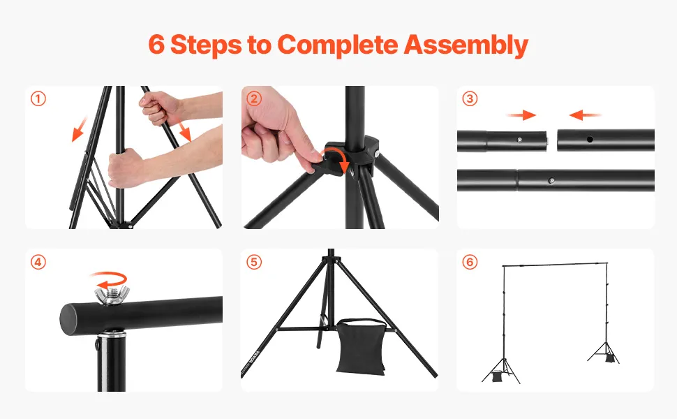 Facile da montare e trasportare: questo supporto per fondale è dotato di perni caricati a molla su ciascuna connessione della barra trasversale per un rapido montaggio e smontaggio senza la necessità di attrezzi